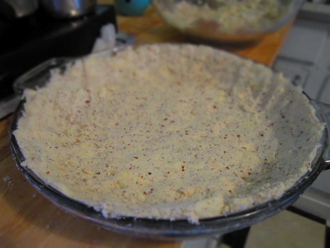 3) Butter a 9-inch fluted tart pan and then press the dough into the pan, working up the sides to make sure the dough is evenly dispersed. If you have extra save some to fill in cracks if necessary after baking.
