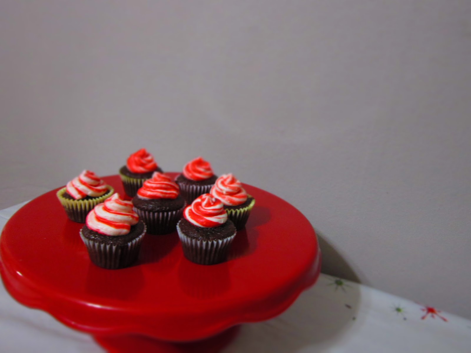 Saturday was our 2nd annual Ugly Christmas Sweater and White Elephant Party. The house was filled with delicious desserts and horrendous fashion. It was a great time. I made classic gingerbread cookie, my pumpkin pie spice cookies, sugar cookies, stained glass cookies, and delicious glitter cookies. I was particularly excited to use my brand new 'A Christmas Story' leg lamp cookie cutter. This is my favorite holiday film and thought this was such a fun shape to make. Everyone had a great time. Little did I know that I'd be making chocolate cupcakes with peppermint buttercream a couple days later for another holiday get together.